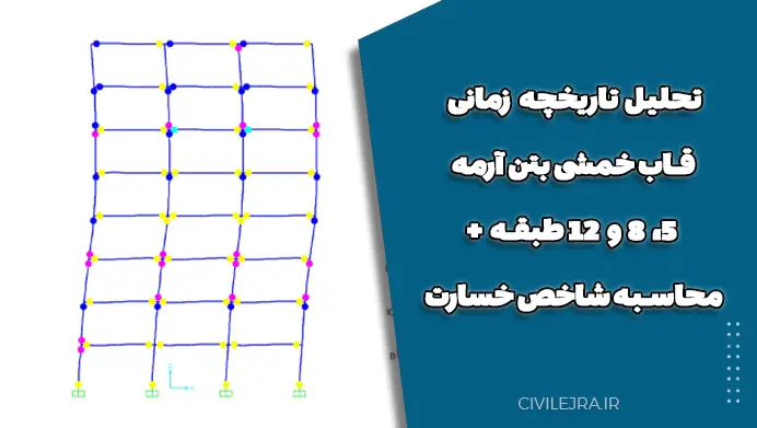 تحلیل تاریخچه زمانی قاب خمشی یکی از مهم‌ترین روش‌های بررسی رفتار لرزه‌ای سازه‌های بتن‌آرمه است که در پروژه حاضر برای قاب‌های ۵، ۸ و ۱۲ طبقه انجام شده و نتایج آن شامل محاسبه شاخص خسارت، کنترل دریفت، بررسی مفاصل پلاستیک و تحلیل غیرخطی دینامیکی می‌باشد.