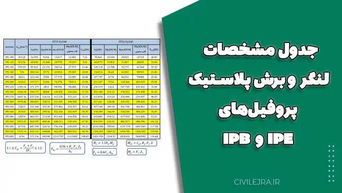 📘 عنوان: جدول مشخصات پرکاربرد لنگر و برش پلاستیک پروفیل‌های IPE و IPB