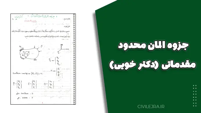 جزوه المان محدود مقدماتی (دکتر خویی) یکی از منابع مهم و معتبر برای یادگیری روش المان محدود (Finite Element Method – FEM) در مهندسی عمران و مکانیک است. این جزوه به شما کمک میکند تا مفاهیم پایه، معادلات اصلی، انواع المانها و تحلیل سازهها را بهصورت کامل و کاربردی فرا بگیرید.