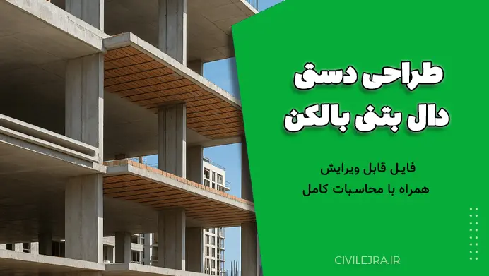 اگر به دنبال یک مرجع کامل و قابل اعتماد برای طراحی دستی دال بتنی بالکن هستید، این فایل دقیقاً همان چیزی است که نیاز دارید. تمامی محاسبات به صورت گام‌به‌گام، واضح و قابل ویرایش آماده شده‌اند تا هم در پروژه‌های واقعی و هم در یادگیری مفاهیم طراحی دستی برای شما مفید باشند.