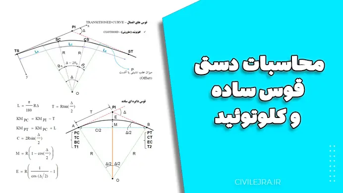 محاسبات دستی قوس ساده و کلوتوئید – آموزش کامل همراه با فرمول و مثال